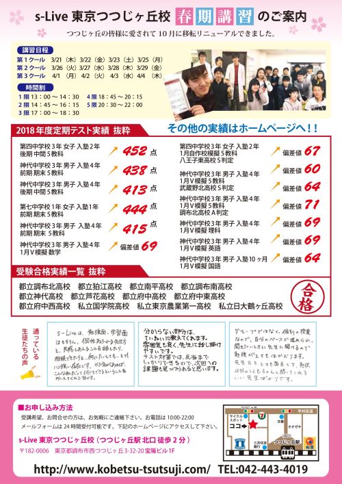 2019年度 春期講習 なんと40,000円相当が無料!! s-Live東京つつじヶ丘校