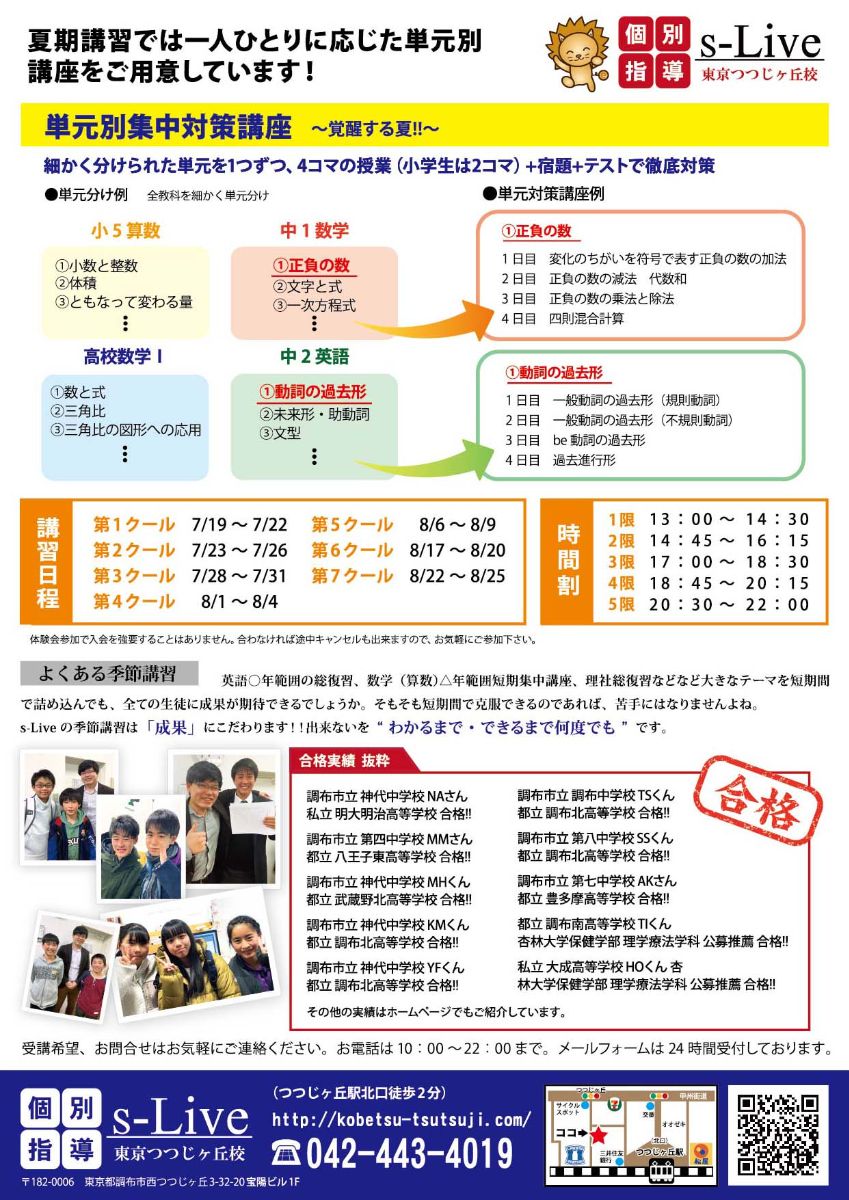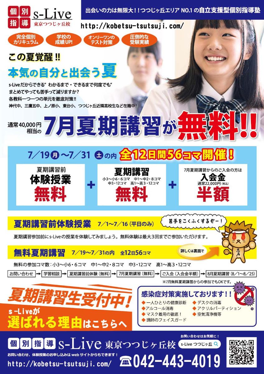 夏期講習前無料体験授業もございます。(7/1~7/16の平日)