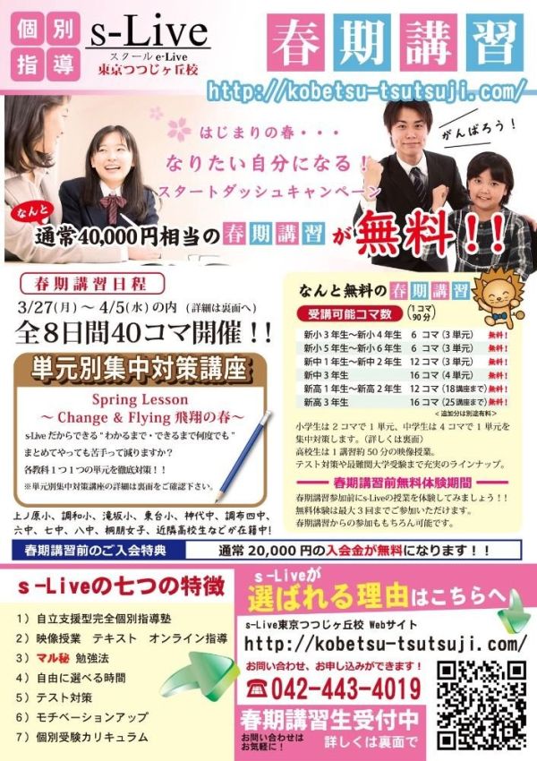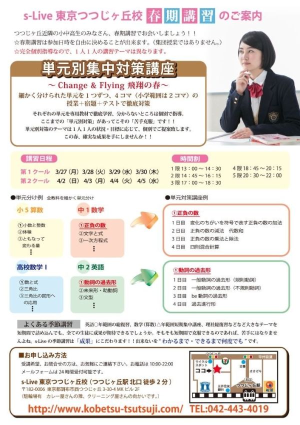 個別指導塾 s-Live東京つつじヶ丘校 春期講習2017