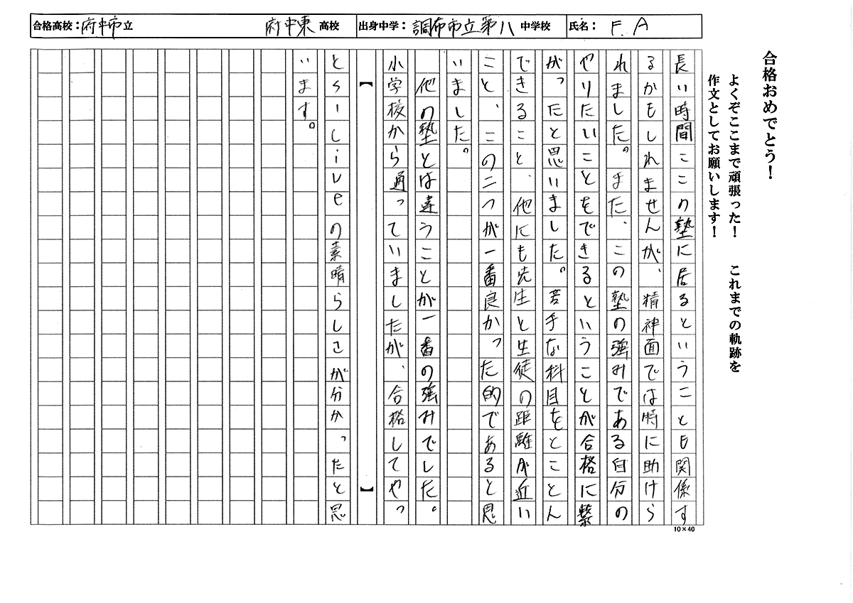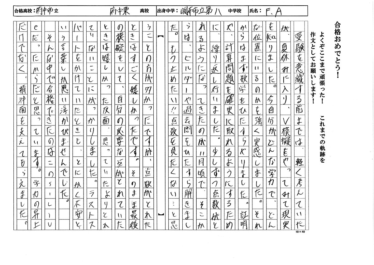 調布市立第八中学校 AFくん 都立府中東高校 合格!!