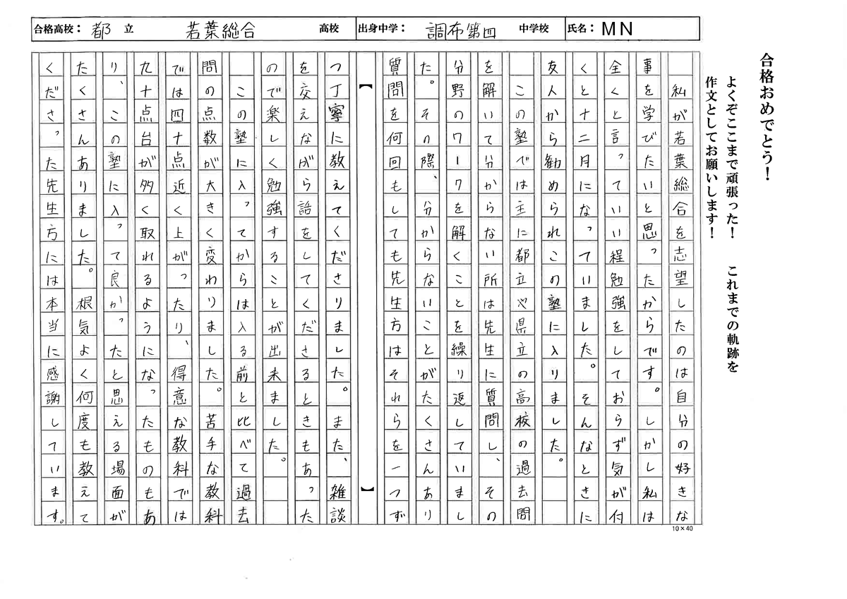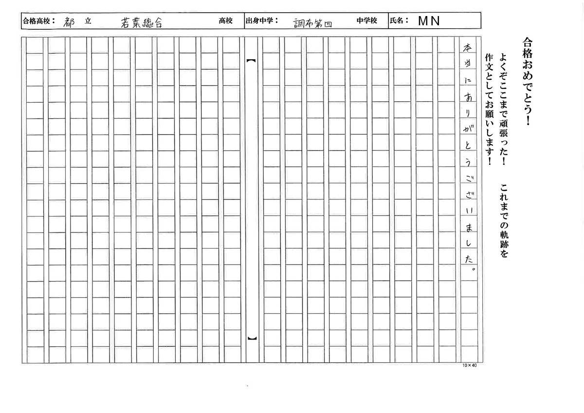 調布市立第四中学校 MNさん 都立若葉総合高校 合格!!